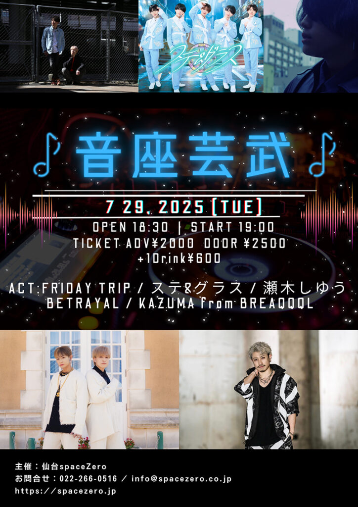 【出演】FRIDAY TRIP / ステ&グラス / 瀬木しゆう / BETRAYAL / KAZUMA from BREAQQQL