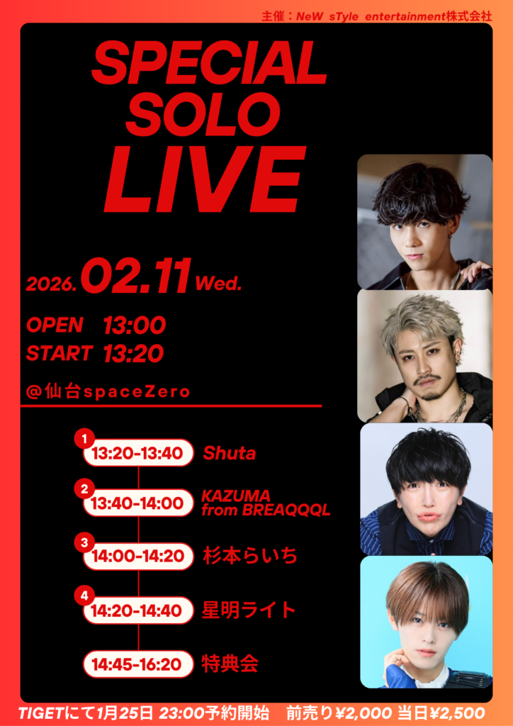 【出演】星明ライト / 杉本らいち / KAZUMA from BREAQQQL / Shuta
